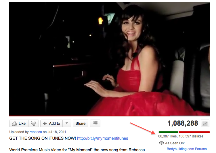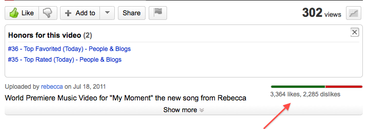 Notice that while the video has only been viewed 302 times, it already has 3,364 Likes and 2,285 Dislikes!