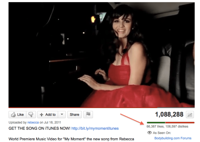 At 5:03pm WEST, I checked back. “My Moment” had passed the 1 million views mark (in just over 8 hours!) and now showed 66,387 Likes and 106,597 Dislikes.