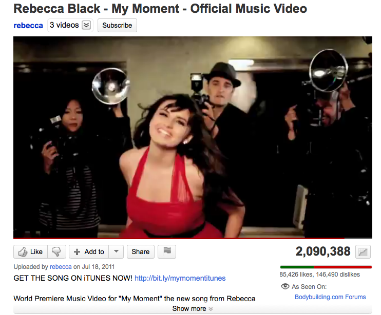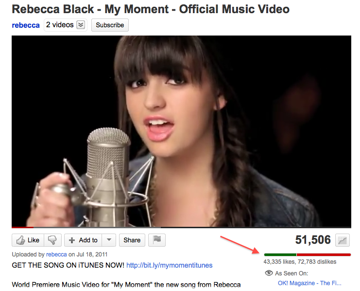 It’s a shame that the Friday video was taken down over a copyright dispute; all the statistics on views, Likes and Dislikes for that video have been lost. It’s hard to believe that a video with over 160 million views could have been so disliked. Based on the above, I’m guessing that it probably wasn’t, and I’m not the first to say so.