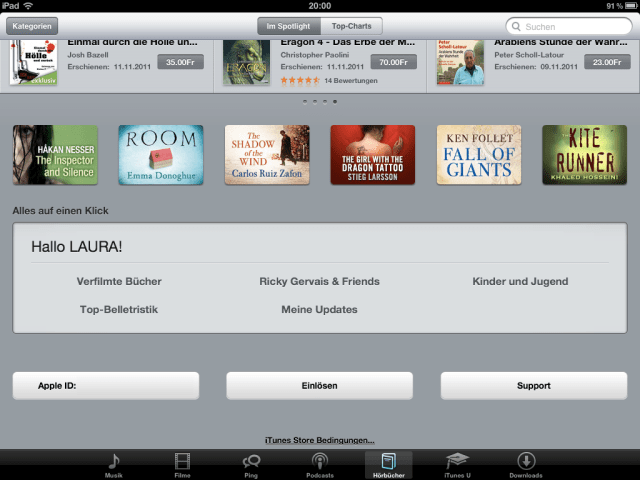 So was it an oversight on Apple’s part? If so, that seems very sloppy. Given how little thought Apple seems to have given to the iBookstore, I wouldn’t have been surprised. However, since the imposition of the awful German language extends to the entire iTunes store, if it’s an oversight, it’s a big one. The store is one of the places Apple should pay extra attention since that’s where people buy.