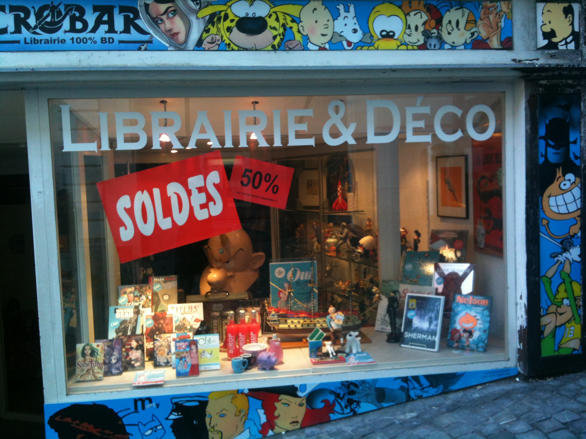 If you look carefully, you can see the posters and pamphlets for the “Oui Au Livre” campaign to vote in favor of regulated book prices in the upcoming referendum.
