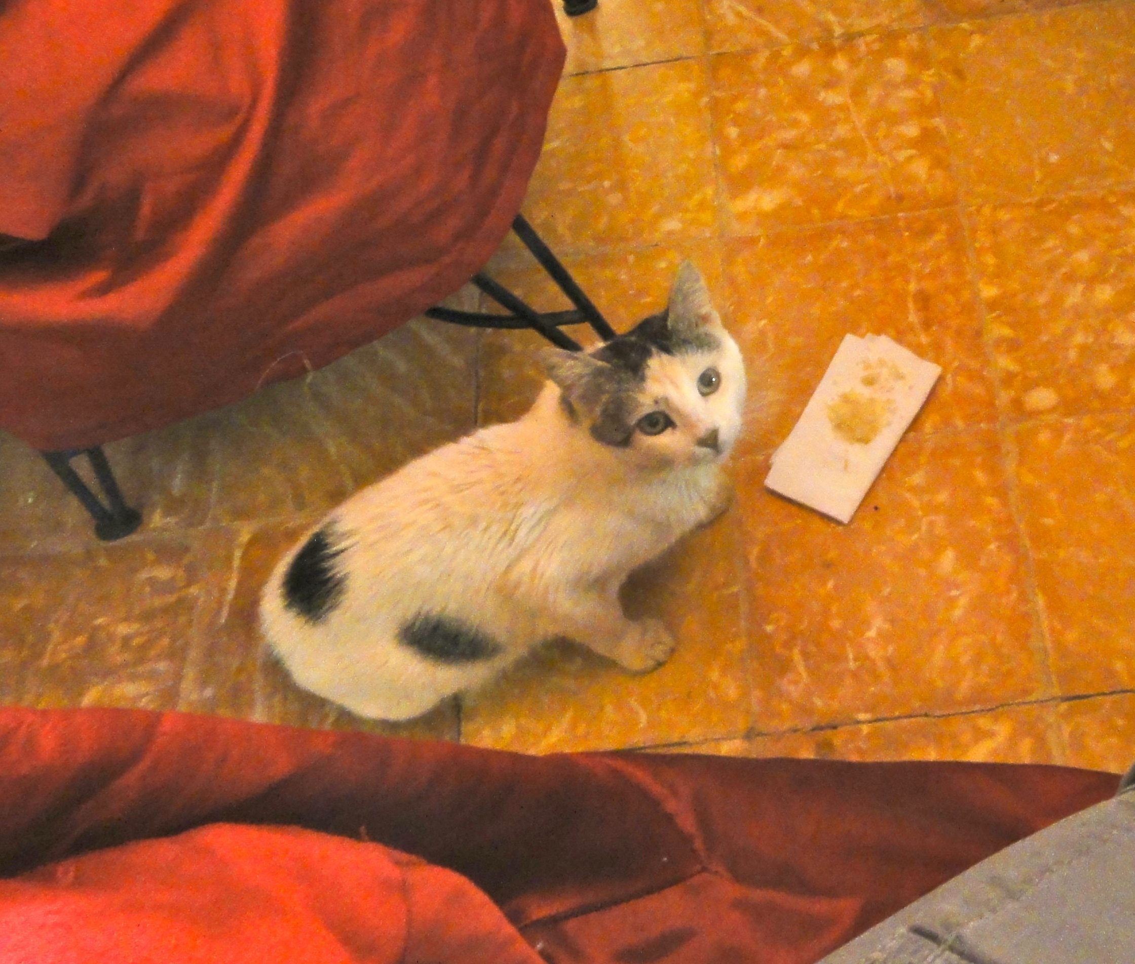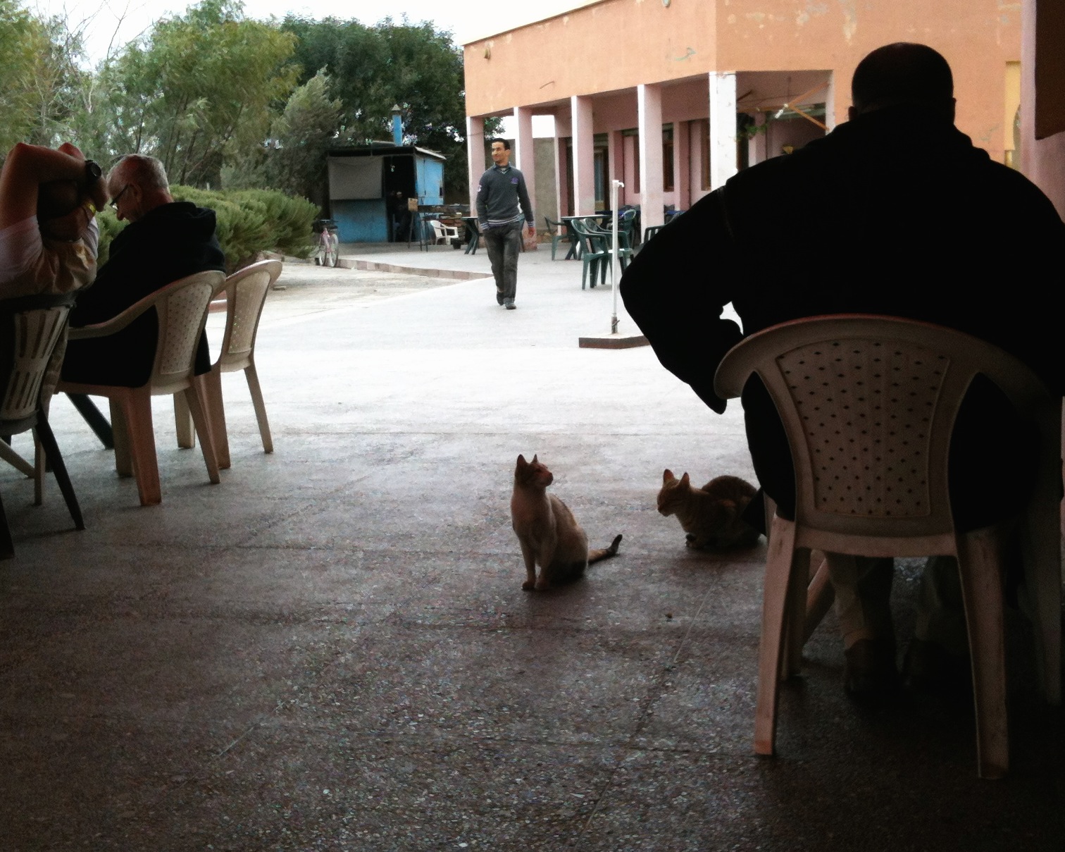 The last photo is a picture of a cat at the Tuareg Hotel in Merzouga. It came looking for handouts too. I couldn’t resist giving it a few little pieces of chicken. I miss cats.