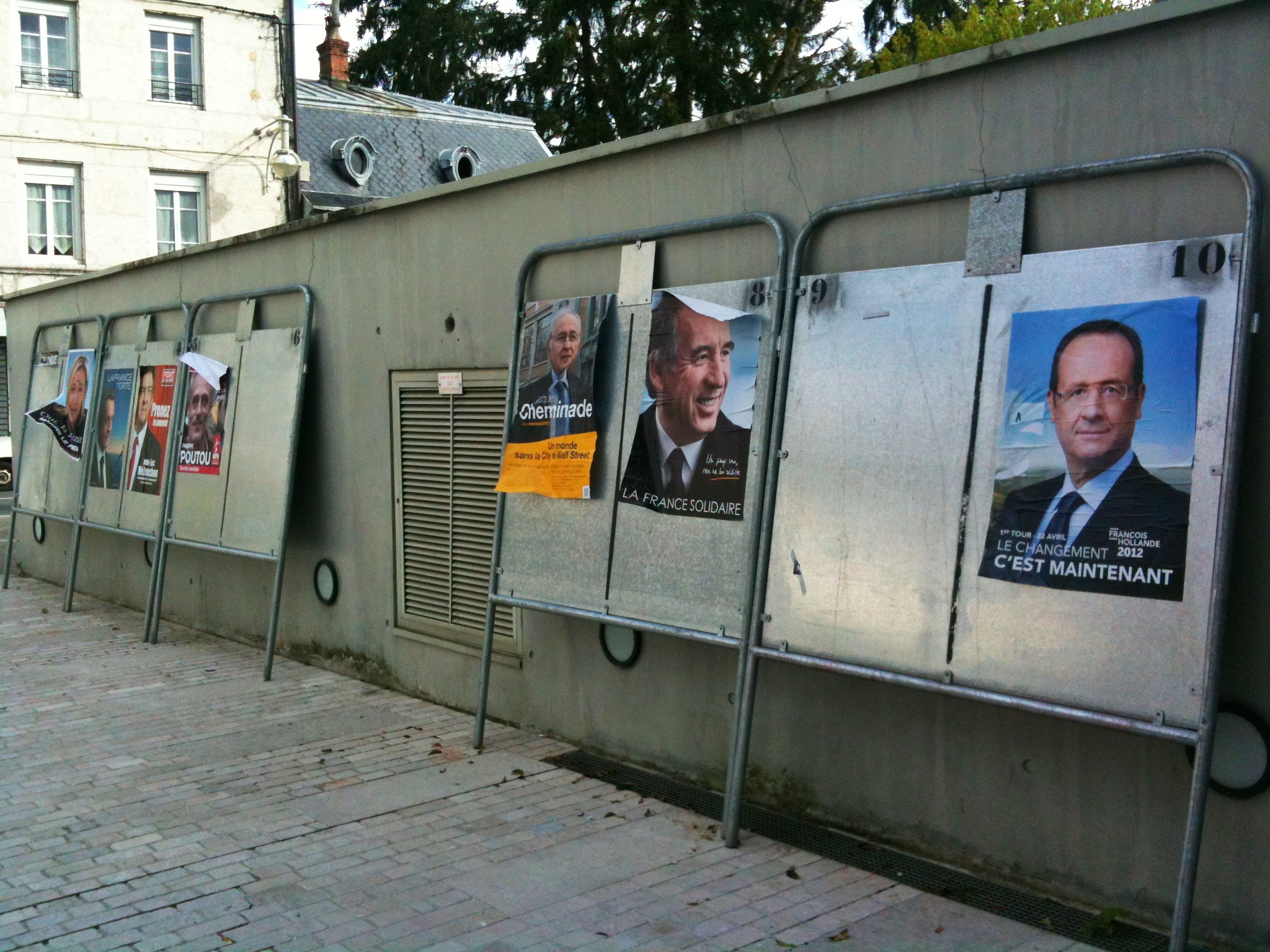 I was at one of the polling places at the town hall in Oyonnax this afternoon a little while before the polls closed. The posters outside the entrance already seemed neglected.