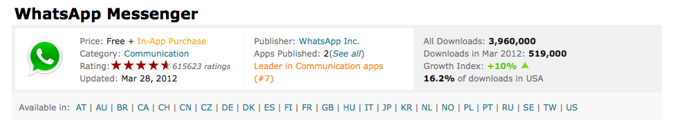 I thought it was significant that although I spend much more time online than most of my non-techie friends, they had all started using this app, and I had never heard of it. I believe this is a good indication that WhatsApp provides a service with mass appeal. As Jeremy Wagstaff on lose wire blog said,