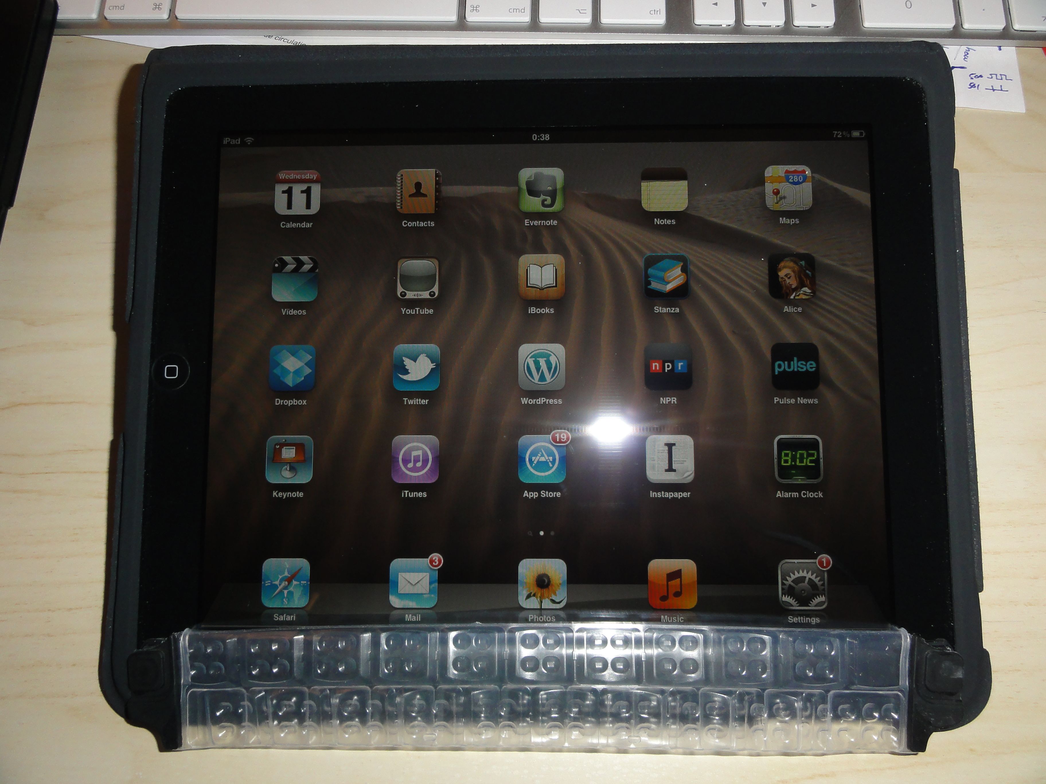 Now, about eight months later, my TouchFire has finally arrived. It was waiting for me in the mailbox when I came home from work on Tuesday. Unfortunately, aside from unboxing and a few basic tests, I didn’t have enough time then to decide how much of a difference it made, but I’m doing so right now (Wednesday), as this post was entirely typed on my iPad with the TouchFire (or was before Evernote lost the original and I had to retype it).
