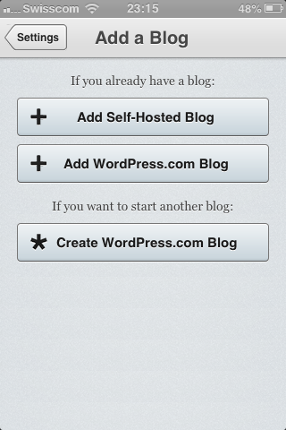 It makes sense that WordPress wants users to be able to create blogs from their WordPress app. However, I don’t understand why they haven’t corrected the screen display for this action. It doesn’t seem like a difficult change, and I wonder how many new users have been scared off by the poor graphics and hassle of navigation.