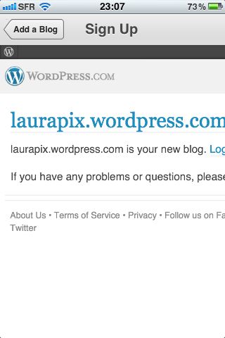 Creating a blog requires just two pieces of information, the desired URL and the blog title. However, the explanatory text doesn’t display in full on the iPhone.