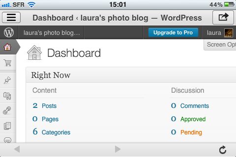 Here, unfortunately, everything broke down, because after creating the blog, the first thing I wanted to check was the theme. It wasn’t possible to tell what theme had been picked by viewing the blog from the iPhone app, and navigating the dashboard was even trickier than creating the blog had been.