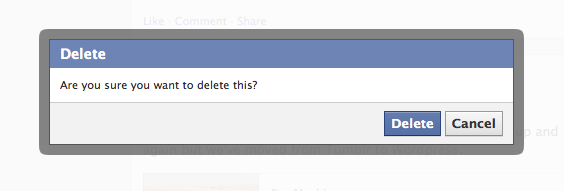 In providing a delete button, in asking me to confirm that I really want to delete my content (posts), Facebook portrayed to me that I had some control over my content as shown on my own Timeline. I’m not talking about anything else. Just my Timeline. Had Facebook not provided a delete button, it would have been different. I might have even acted differently, but that’s beside the point. Facebook told me I could delete my content from my Timeline, by providing that button, by leading me through a workflow to operate it. And then they brought that deleted content back. Twice.
